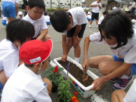今後水やりなどのお世話を通して、班の絆が深まるとともに、子どもたちの心にきれいな花が咲いてくれることを願っています。