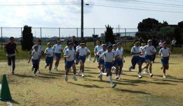 前日の雨で運動場のコンディションが万全とは言えなかったため、一部コースを変更(走る距離は変えずに)して実施しました。