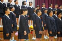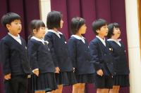 かわいい1年生たちが,元気いっぱいのお返事でスタート!