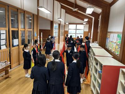 終業式が終わった後は、6年生が進んで後片付けしてくれます。頼もしいです。