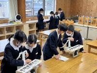鍵盤ハーモニカは4年生がお手本になり、教室で