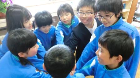 並ぶ順番や綱のひき方,かけ声のかけ方を進んで話し合い,自然に円陣を組んでいました。先日の高学年集会が活かされたのかな?6年生のように「心のハードルが低い」姿が見られました。「心のハードルが低い」と男女の仲もよくなり,クラスの雰囲気も良くなり,たてわり班の絆も深まりますね。