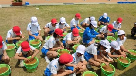 そこで14日(火),JAはくいの職員の皆様のご協力で,バケツ苗の育て方を教えていただくことにしました。職員の皆様の丁寧な説明を聴き,初めての体験に胸をわくわくさせる子ども達。