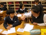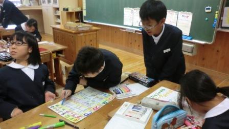 「去年自分もやさしく教えてもらったから・・・」と進んで困っている子を手伝う姿も見られました。この学び合いは,日頃学習の中で行っている言語活動のよさが生かされるとても美しいかかわりでしたよ。