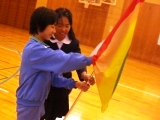 先日,本校で行われた「絆コンサート」で,全校の前で絆アップ宣言をした5年生。