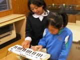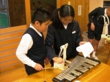 6年生は5年生に各楽器を、4年生は3年生に鍵盤ハーモニカを個別に教えてくれました。