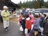 とれたてのおいしいりんごも食べながら、みんな沢山手を挙げて聞いていました。