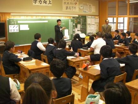 羽咋中学校の教諭2人が来校し,数学へのトビラを開く体験授業を行っていただきました。
