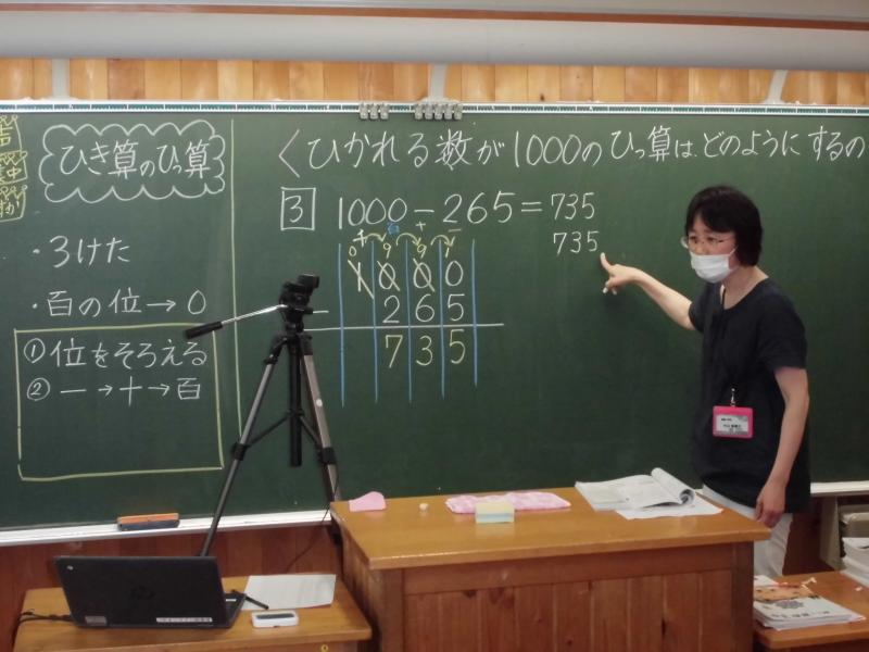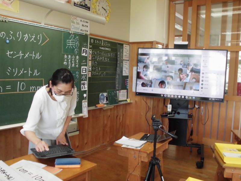 本校では、学童を利用する児童等は校内にて教室を分散し、ご家庭でインターネットに無線接続できる環境のある児童についてはタブレット端末を持ち帰り、各家庭からオンラインで授業に参加する形式で行いました。