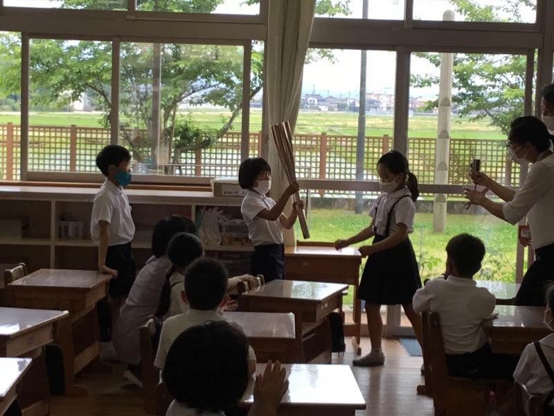 各教室で児童が順番にトーチをリレーし、トーチを持った児童みんなが大興奮しておりました。