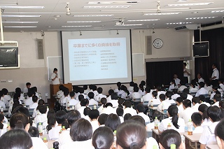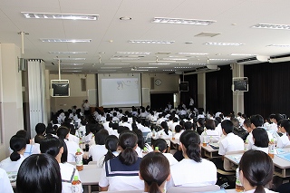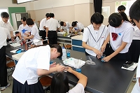 約220名の中学生が参加し、模擬授業や部活動を体験しました。