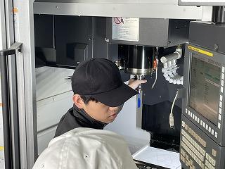 ものづくりマイスターの横山さんです。 マシニングセンターの内部の様子