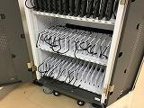 このタブレットを充電するための充電ボックスは、テニス部の生徒が「学校のために何か活動したいです!」ということで配線等の作業をしてくれました。これで、40台一気に充電することができます。ありがとうございます。