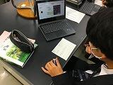 その後、役割分担をして、測定やデータ処理!途中で、手順などわからなくなったら手元のchromebookに説明資料が入っているので班で確認しながら、正確・丁寧な測定を心がけました。(各班の進度に合わせて、最初の説明時に使用した資料が各自すぐ見ることができ、より協働できる!)
