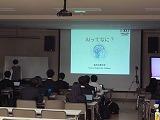 5月7日の1・2限目に金沢工業大学:SPfC(Science Project for Children)の方々に本校へ来ていただき3年生理系を対象に講義をしていただきました。このSPfCというグループは、小中高生に出前授業を行うプロジェクト活動をしていて、多くの子どもたちに理科の良さを広めていく活動もしています。ということで、chromebookやスマホなどICT機器を用いて授業をしていただきました。さらに、今回は対面とGoogleMeetによるリモートを活用しながらのハイブリッド型授業で行いました。授業のテーマは、「AIについて」です。