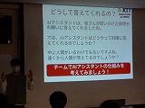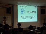 この活動後、「では、どうして音声を理解して回答できる?」との質問を受け各ペアごとに考察しました。難しい質問でしたが、「単語ごとにプログラミングしていった結果によるもの」など考えることができたペアもいました。生徒は、音声アシスタント仕組みとして音のテキスト化や単語・文脈の判断など答えるまでの短い時間にAIがたくさんの作業を行っていると知り、驚いていました。