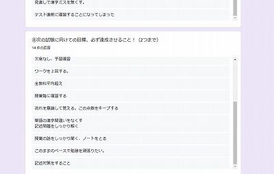 プリントだと回収してチェックして生徒の意見を見ていく必要がありましたが、chromebookだとその授業時間内に生徒の回答を見ることができ、すぐに生徒同士で意見共有もできるので、効果的なリフレクション活動となりました。(さらに、データとして残っていくのでポートフォリオとして自分自身の成長度合いなどを確認しやすい!)