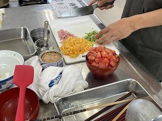 三人一組で、手分けして調理します ぶっかけそうめんの具材が揃ってきました