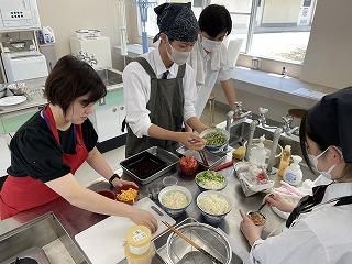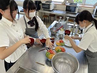 盛り付けていきます。材料が多めなので 料理は楽しいですが、授業時間は限られて