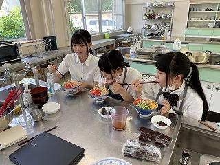 使って親子丼をつくりました。澄まし汁の塩分濃度の計測も行いました。