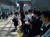 今回は、金沢フォーラス前に立ち、通行されている方々に声をかけ、環境に関するクイズ等にご協力していただき、環境問題を身近に感じていただくための取り組みに参加させてもらいました。