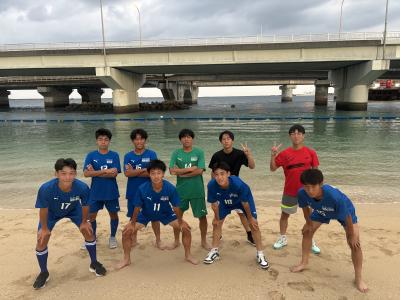 選手と一緒にホテルから10分ほどのビーチまで走り、砂浜ダッシュを行い、汗を流しました