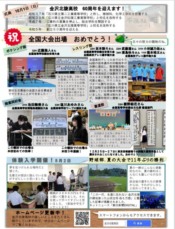金沢北陵高校の良いところ、楽しいところを金沢北陵だより・各学年だよりを通じて