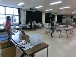 レスリング部の部員が協力してくれました。積極的に力仕事をする部員たち。