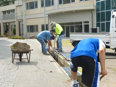W坂の草刈りや、グランド付近の溝をきれいにしていただきました。