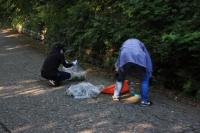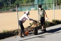 刈り取った草を集めます 皆さん積極的に活動 レスリング部が集めた