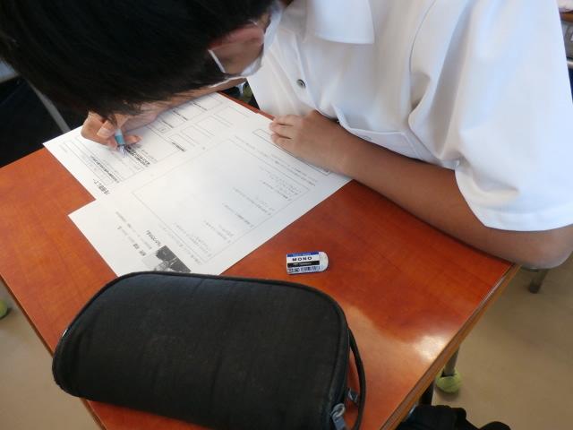 進路ワークブックを使い、具体的に進路(進学・就職)のポイントを絞りながら考察していくということを行いました。一人ひとり自分の進路に真剣向き合い、取り組んでいる姿が見られました。