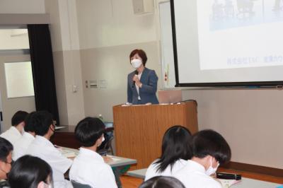 いしかわの企業人インタビューDVDとは、様々な分野で活躍する石川県内の企業の方々が、自身の体験をもとに生き方や考え方を語り、高校生に「人間力」の大切さなどのメッセージを伝えるものです。DVDを視聴しながら、企業の方々がこれまで培ったチャレンジ精神や忍耐力、コミュニケーション能力など、今まさに社会で必要とされる「人間力」の大切さを学ぶ機会となりました。
