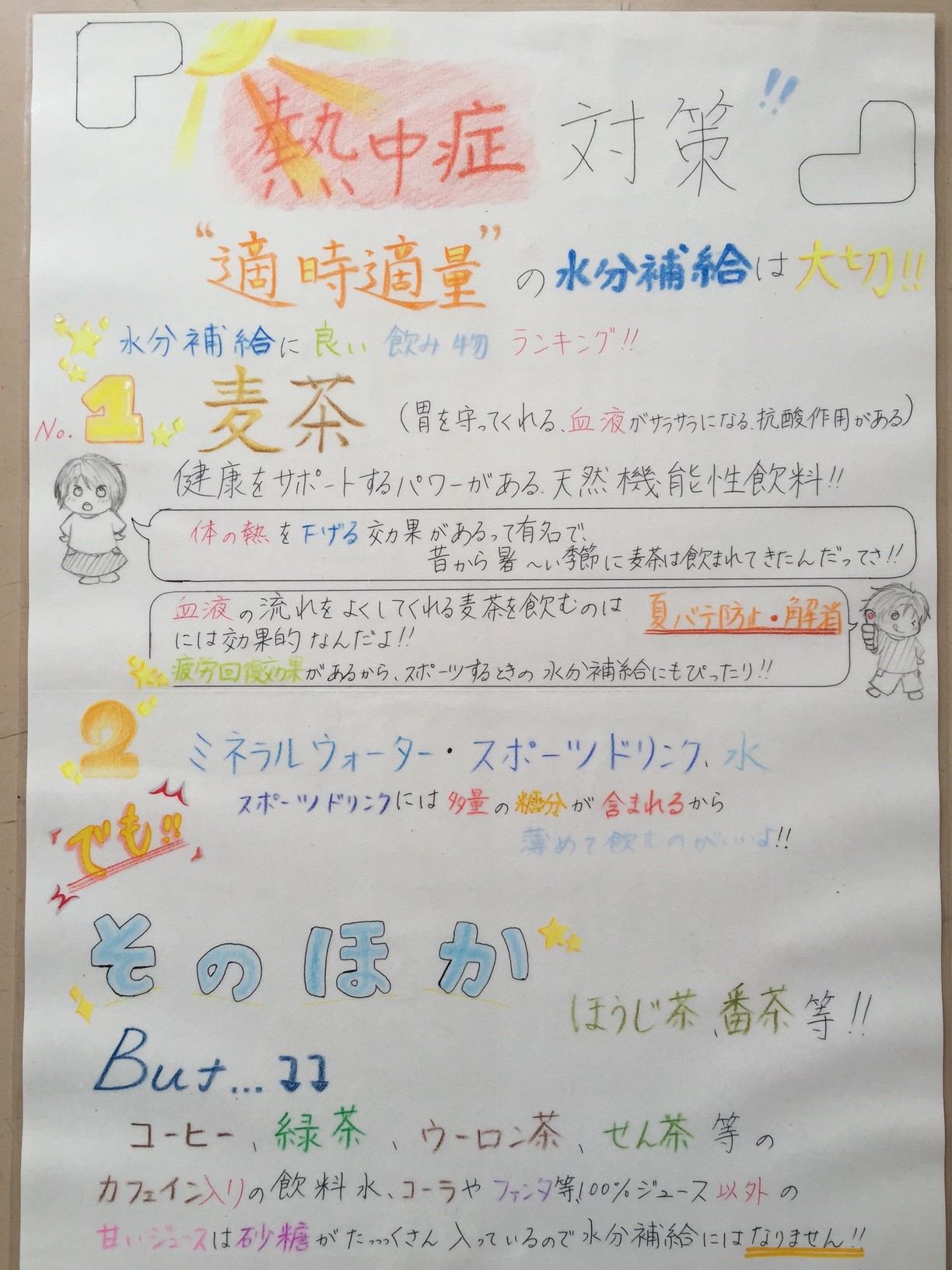 保健委員会では、熱中症についての学習を行い、それをもとに、学年や