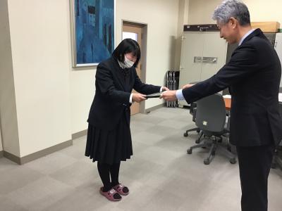 12月14日(水)に本校で表彰伝達が行われ、石川県警本部の県民支援相談課長小山様から、表彰状等を受け取りまし