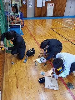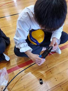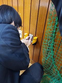 以前から体育科の先生より修繕の要望があったので、工業系列の先生が監督のもと、第二種電気工事士を取得した部員たちが修繕してくれました。