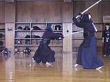 左の生徒は金沢泉丘高校と対戦しました。面を1本とられましたが、最後まで積極的に攻め続けることができました。