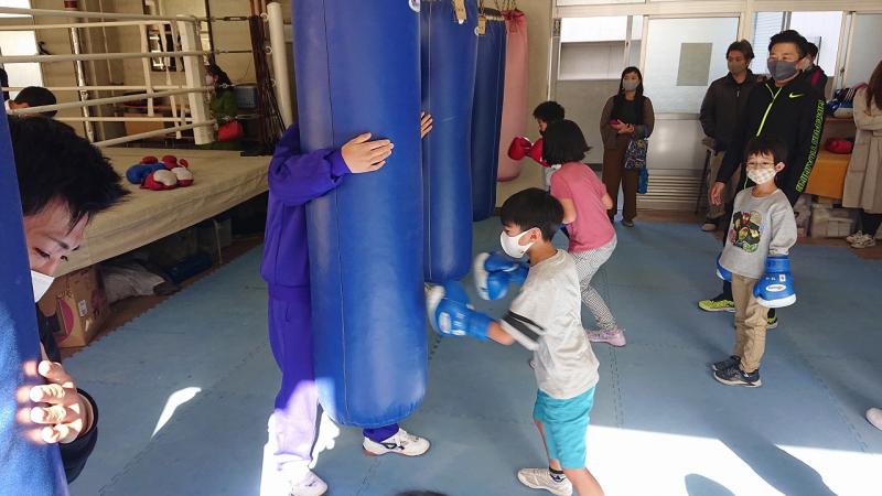 みなさん楽しそうに活動していました。中には、初めてとは思えないくらいのナイスパンチを出している小学生もいました。この小学生たちがボクシングを始めてくれることを願っています。