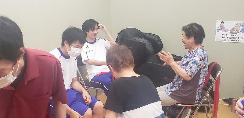 生徒たちは、頭の体操、手指の体操、最後にリラックスできる体操という流れで企画しました。練習の時は、ドキドキしており、不安そうな様子でしたが、当日は参加者の皆様のご協力もあり、楽しく!和やか!な雰囲気の中活動することができていました。