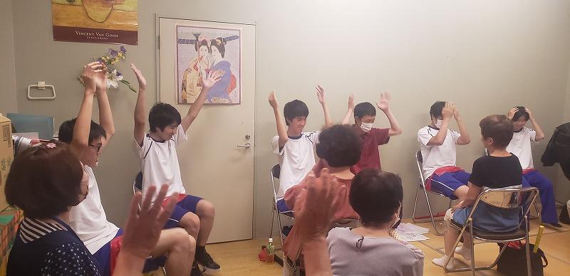 頭を使った体操や下肢筋力をメインと行う体操を中心に行われました。今回は高校生が参加者の皆さんの見本となる