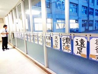 書道部では、明日から大会へ挑む部活動の皆さんへ、応援メッセージを書きました。