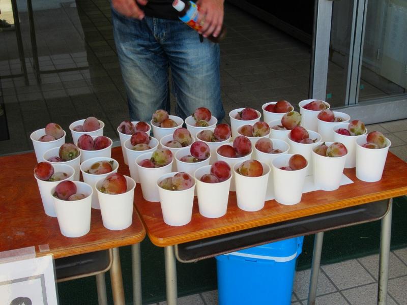 S字坂のスロープも階段部も除草 作業後は会長からぶどうのふるまい! 皆様大変おつかれさまでした!