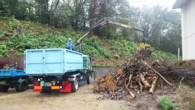 通学路の階段の除草作業・清掃作業・校舎裏に積んであった木材の山を撤去を、