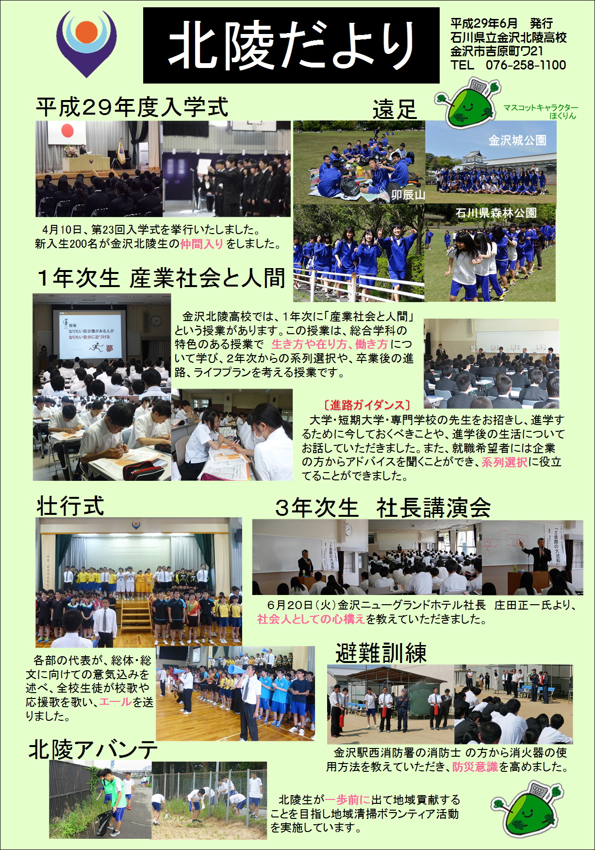 今回は、1年 学校企業見学、2年 インターンシップ、ボランティア活動、部活動など様々な活動について特集してあります。