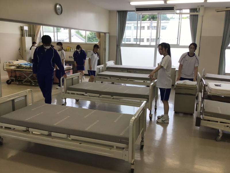 今回は「ベッドメーキング」の実習の様子です