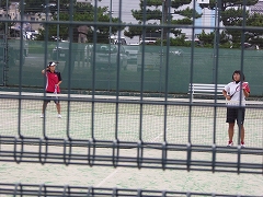 本校から、男子4.5ペア、女子1ペアが出場し、船水・谷島ペア、南・森ペア、乙﨑・久安(翠星高校)合同ペアが2回戦に進出しました。折戸監督の指導のもと、スイングがコンパクトで早くなるなど、着実に力がついてきていることが実感できた大会でした。