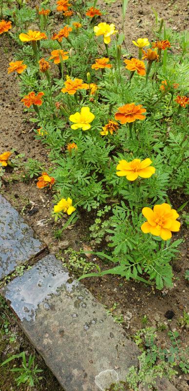 マリーゴールド、百日草、ミニひまわり、ペチュニアです。