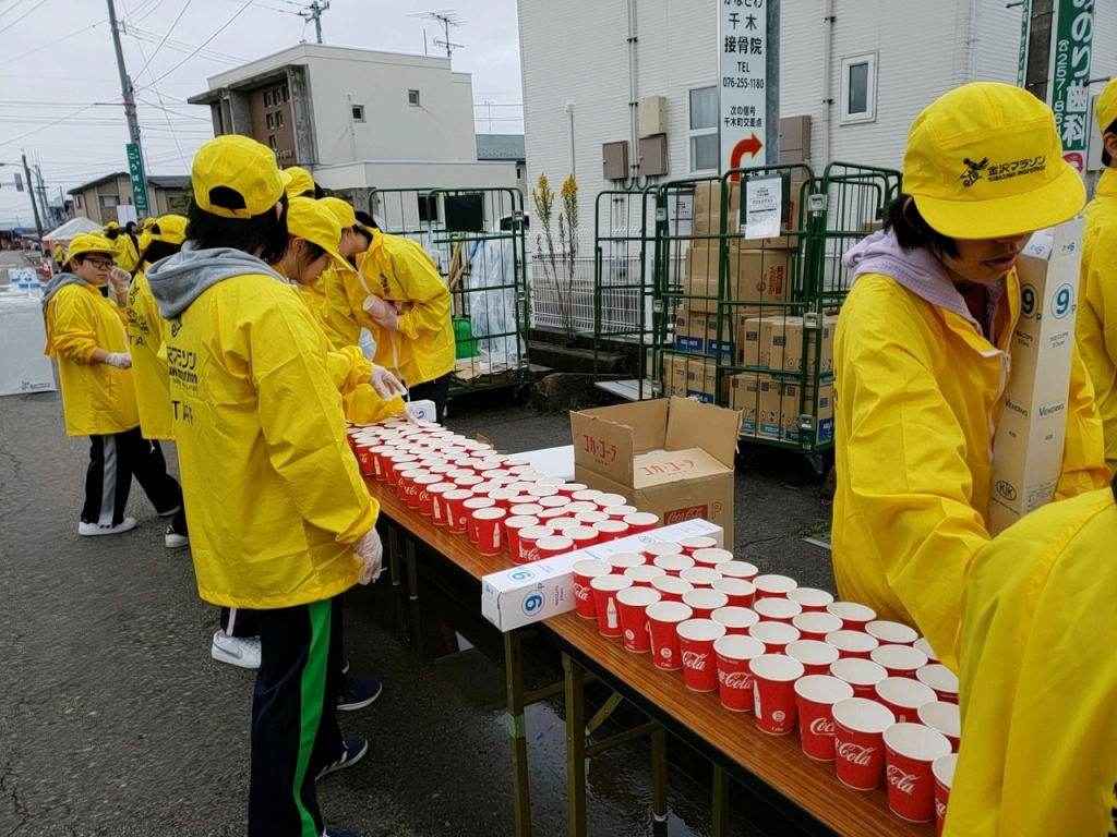 金沢マラソンの給水ボランティアに陸上部と一緒に参加させていただきました。
