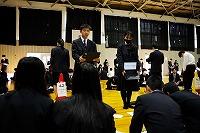 校長先生からは、インターンシップが「皆さんの将来の可能性を広げてくれるもの」であり、「生きる力を身に付けることのできる、学校ではできない体験」であること、また「キーワードは自分。自分で考えて行動し、チャレンジしてほしい」、そして「関わってくださる方々に感謝の気持ちを持って体験してきてほしい」と激励の言葉をいただきました。