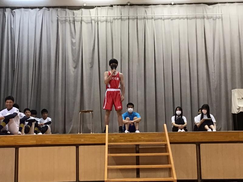 決意表明の後は、生徒会長の長さんから激励の言葉が送られました。