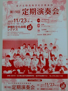 11月23日(祝)に 金沢北陵高校 第19回定期演奏会が開催されました。
